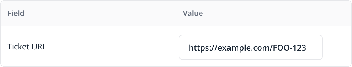 The following screenshot shows a custom field named "Ticket URL" that is displayed to Flagsmith users when editing or creating a feature: